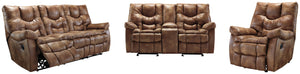 Includes: 1 Reclining Sofa,1 Glider Reclining Loveseat with Console,1 Recliner