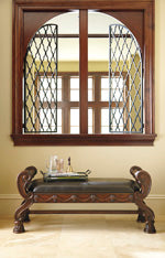 This upholstered bench proves that Old World decor is irresistibly stylish. Classical plumes and medallions highlight the exposed frame. Manufacturer Warranty: 365 Days