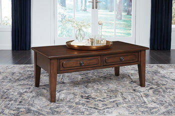 Adinton Signature Design by Ashley Reddish Brown Coffee Table, 48W x 26D x 19H, 51lbs.
