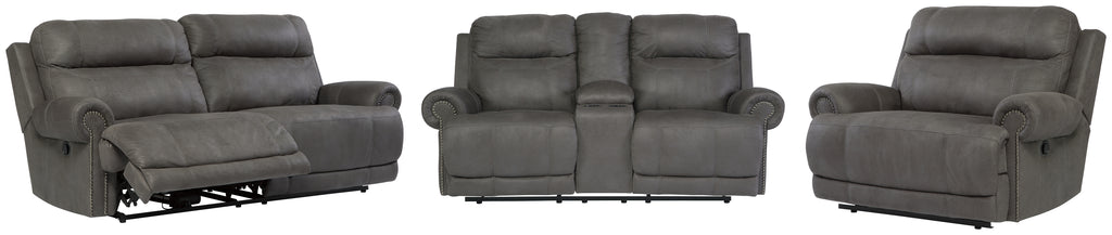 Includes: 1 Oversized Recliner,1 Reclining Sofa,1 Reclining Loveseat with Console