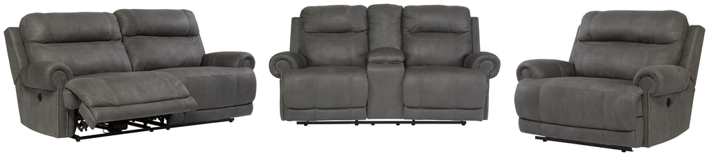 Includes: 1 Power Reclining Sofa,1 Oversized Power Recliner,1 Power Reclining Loveseat with Console