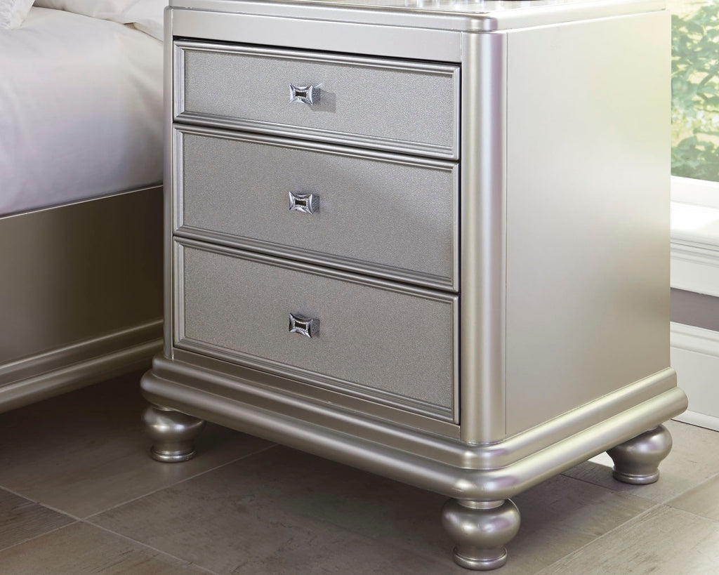 Coralayne Signature Design by Ashley Silver Nightstand, 26W x 20D x 29H, 75lbs.