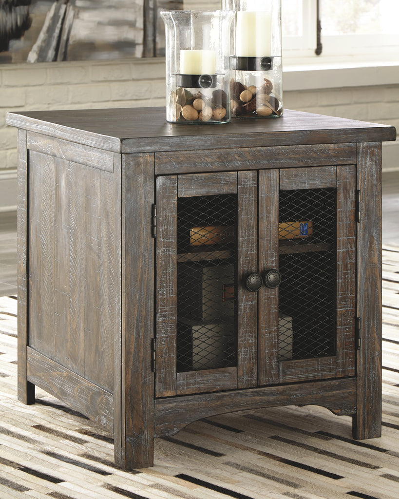 This end table is so much better for the wear. Its clean straightforward profile is enriched with solid pine wood treated to a complex finish melding gray and brown hues. Cabinet doors with wire mesh front infuse a farmhouse fresh element thats right on trend. Talk about loaded with charm and packed with possibilities. Manufacturer Warranty: 365 Days