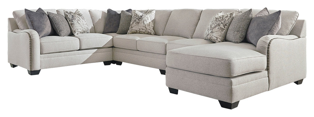 Dellara Benchcraft Chalk 4-Piece Sectional with Chaise, 129W x 98D x 38H, 353lbs.