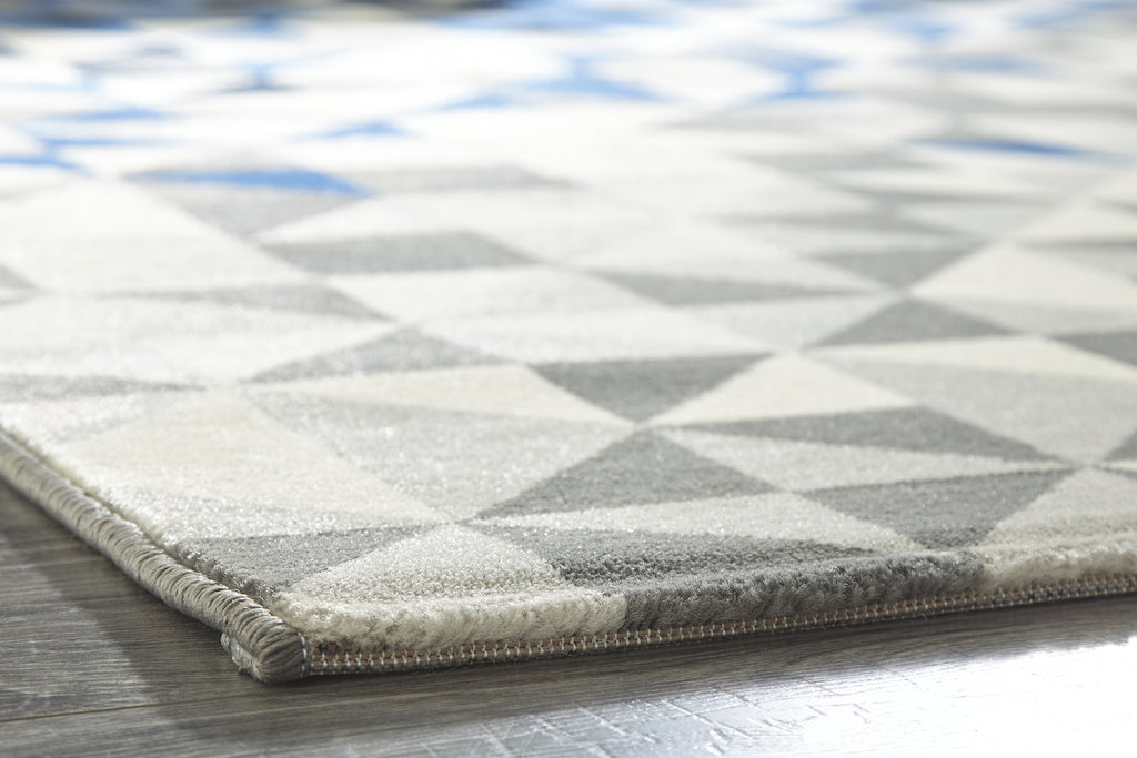 Contemporary triangles in black blue gray and white make a striking debut on this rug. The gradient along with soft pile will be sure to add modern flair and eye-catching interest underfoot. Manufacturer Warranty: 0 Days