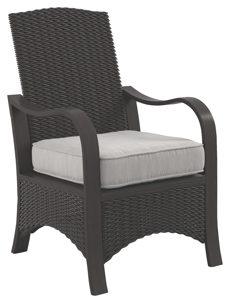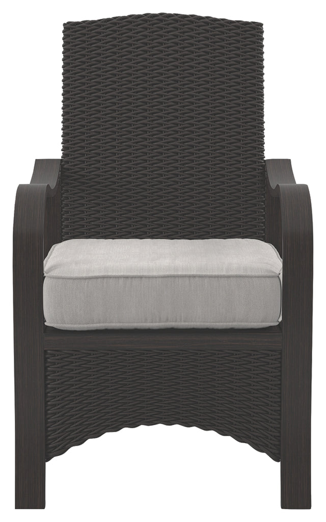 This outdoor dining chair is a casual contemporary addition to your sunroom or backyard retreat. Extended back makes it beautiful from the front and behind. Resin wicker infuses impeccable tactility with the rust-proof aluminum frame. Durable seat cushion provides comfort and neutral style. Feel peace of mind with Nuvella easy-to-clean and fade-resistant fabric. Manufacturer Warranty: 365 Days