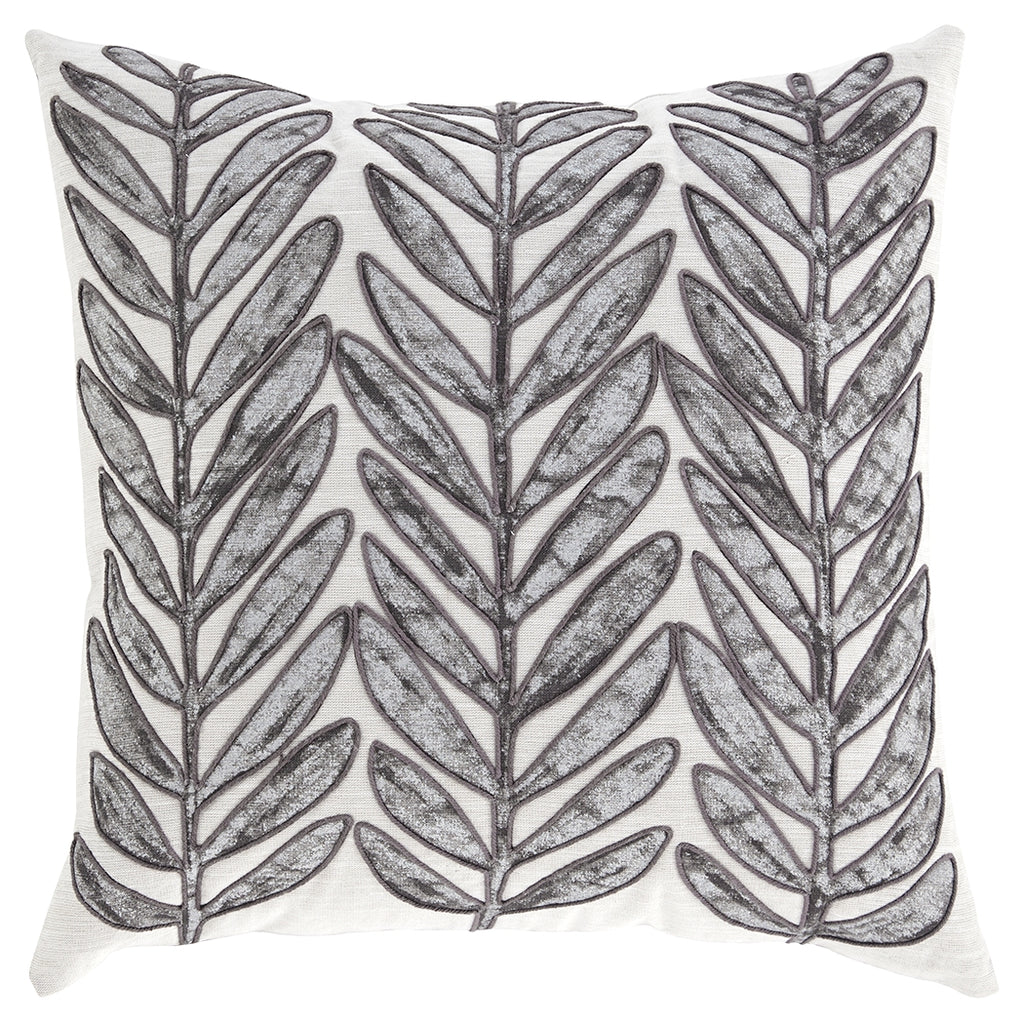 Blending soothing shades of taupe and silver with an artful leaf design this toss pillow is a natural fit. Cord outlining gives this earthy-elegant pillow a hint of cool texture. Manufacturer Warranty: 0 Days