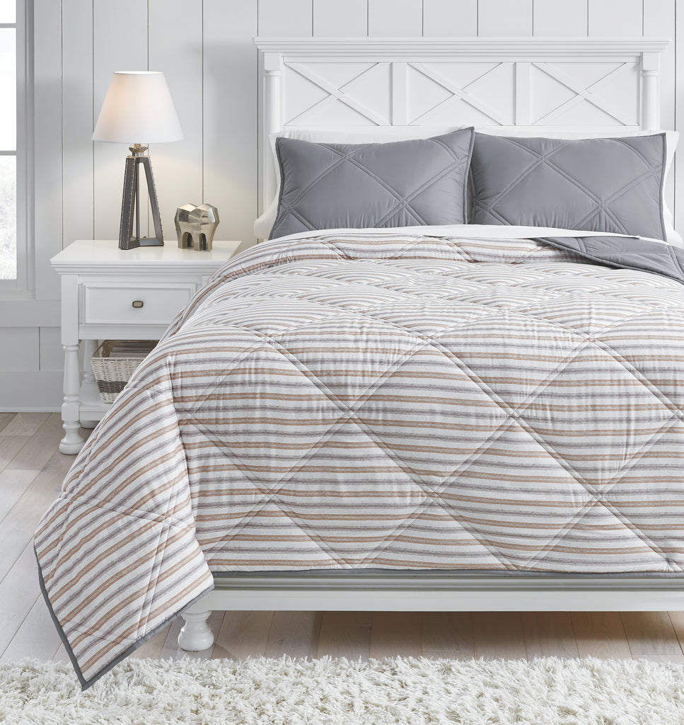Rhey Signature Design by Ashley TanBrownGray 3-Piece Full Comforter Set, 84W x 90D, 6lbs.