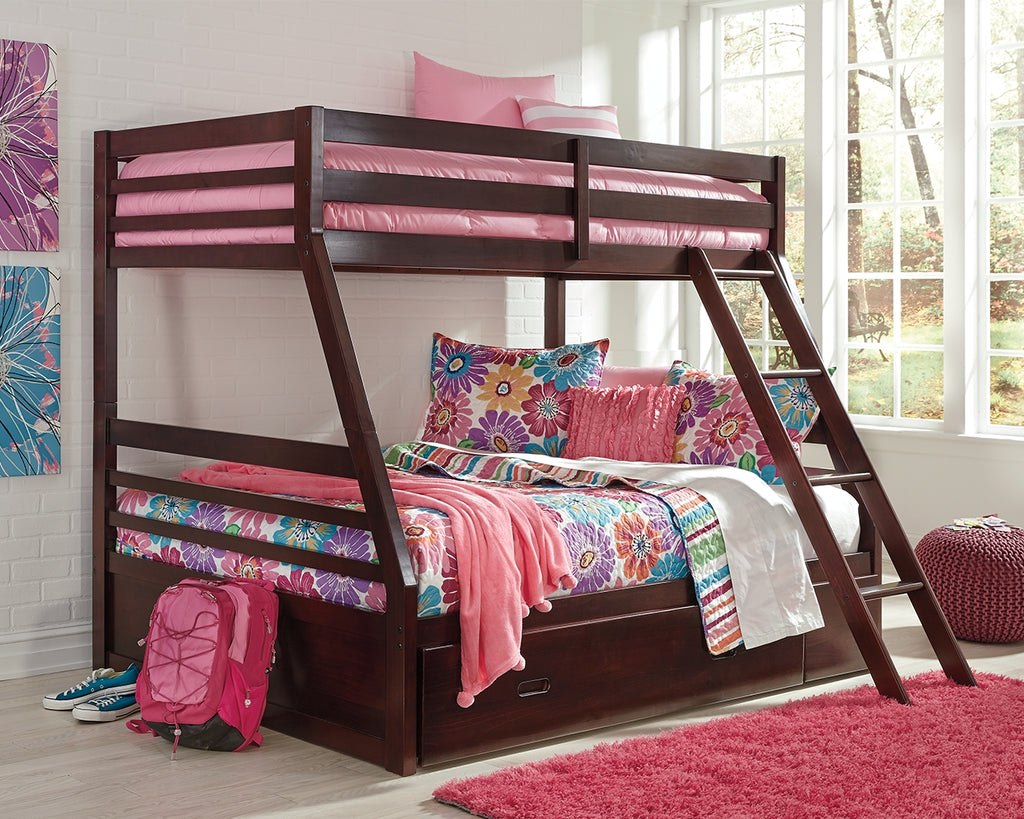 Halanton Signature Design by Ashley Dark Brown Twin over Full Bunk Bed with 1 Large Storage Drawer, Twin, 161lbs.