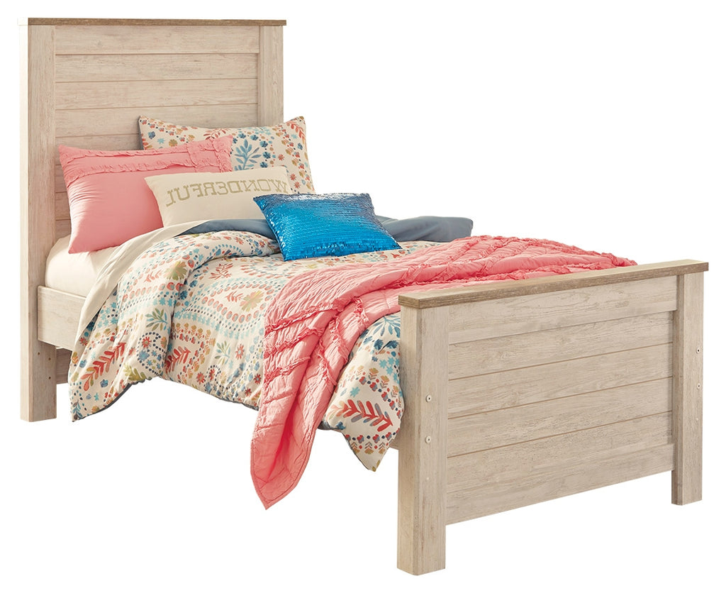 Willowton Signature Design by Ashley Whitewash Twin Panel Bed, Twin, 89lbs.