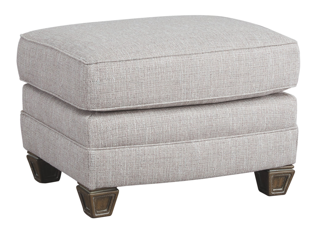 For those yearning to revisit the past this richly styled ottoman is a wonderful place to transport yourself. Painstaking details include an opulent exposed feet with carved detailing and distressed finish. Adding to the appeal of this plushly cushioned ottoman an easy-on-the-eyes slate gray upholstery with feel-good nubby texture. Manufacturer Warranty: 365 Days