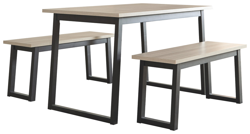 Waylowe Signature Design by Ashley Two-tone Dining Room Table and Benches Set of 3, 30W x 48D x 30H, 104lbs.