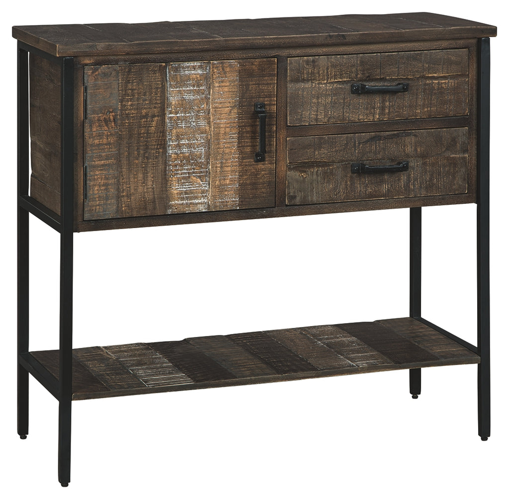 Distressed at its best this accent cabinet is packed with possibilities. Brown gray and white hues give the distressed top and lower shelf loads of cool character. Combination of cabinet and drawer storage simply makes sense. Awesome in an entrywayand what a delicious addition to a kitchen or dining room. Manufacturer Warranty: 0 Days
