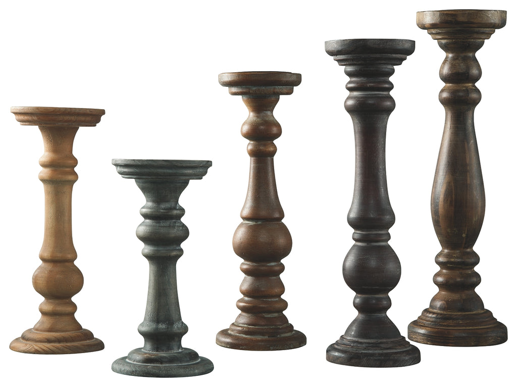 Delight in the beauty of rustic romance with this pillar candle holder set. Sporting elegant turnings for traditional flair this set of five candle holders is crafted of wood with a richly distressed finish. Multi-colored mix adds a touch of personality. Manufacturer Warranty: 0 Days