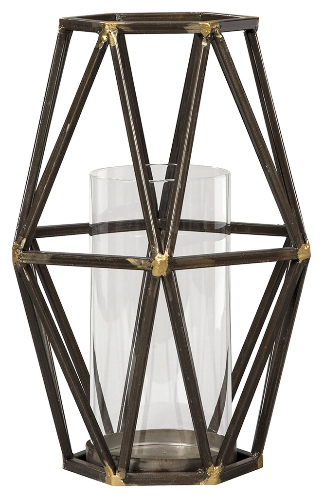 Devo Signature Design by Ashley BlackGold Finish Candle Holder, 9W x 9D x 12H, 2lbs.
