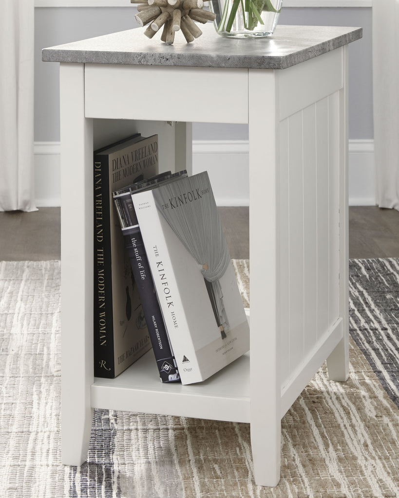 Diamenton Signature Design by Ashley White Chairside End Table with USB Ports Outlets, 14W x 23D x 24H, 25lbs.