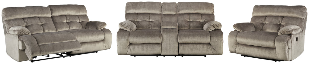 Includes: 1 Reclining Sofa,1 Oversized Recliner,1 Reclining Loveseat with Console