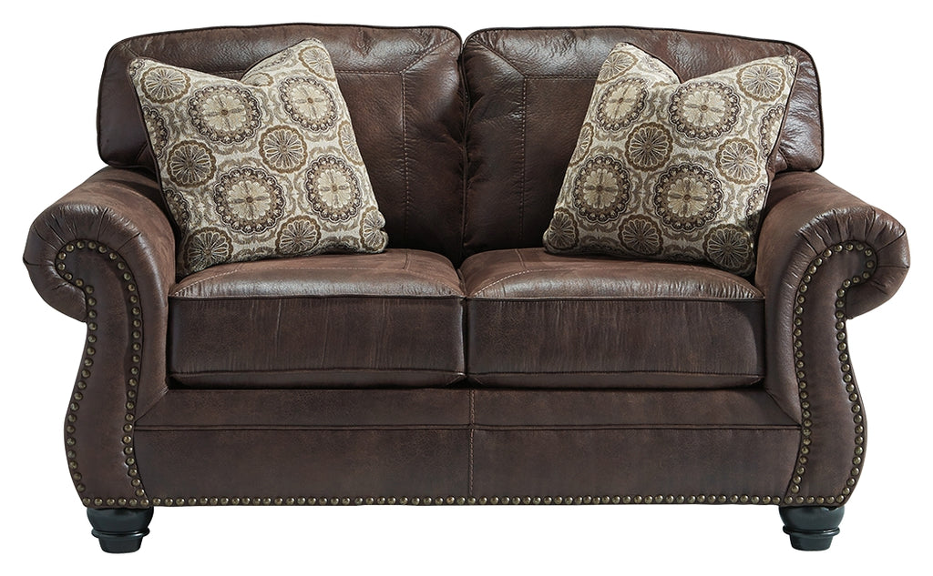 Revel in the ruggedly handsome look of leatherat a fraction of the costwith this stylish loveseat. Inspired by the rough and tumble beauty of the Southwest it sports a weathered faux leather crafted for warmth comfort and everyday living. Touch of nailhead trim adds perfect punch of character. Manufacturer Warranty: 365 Days