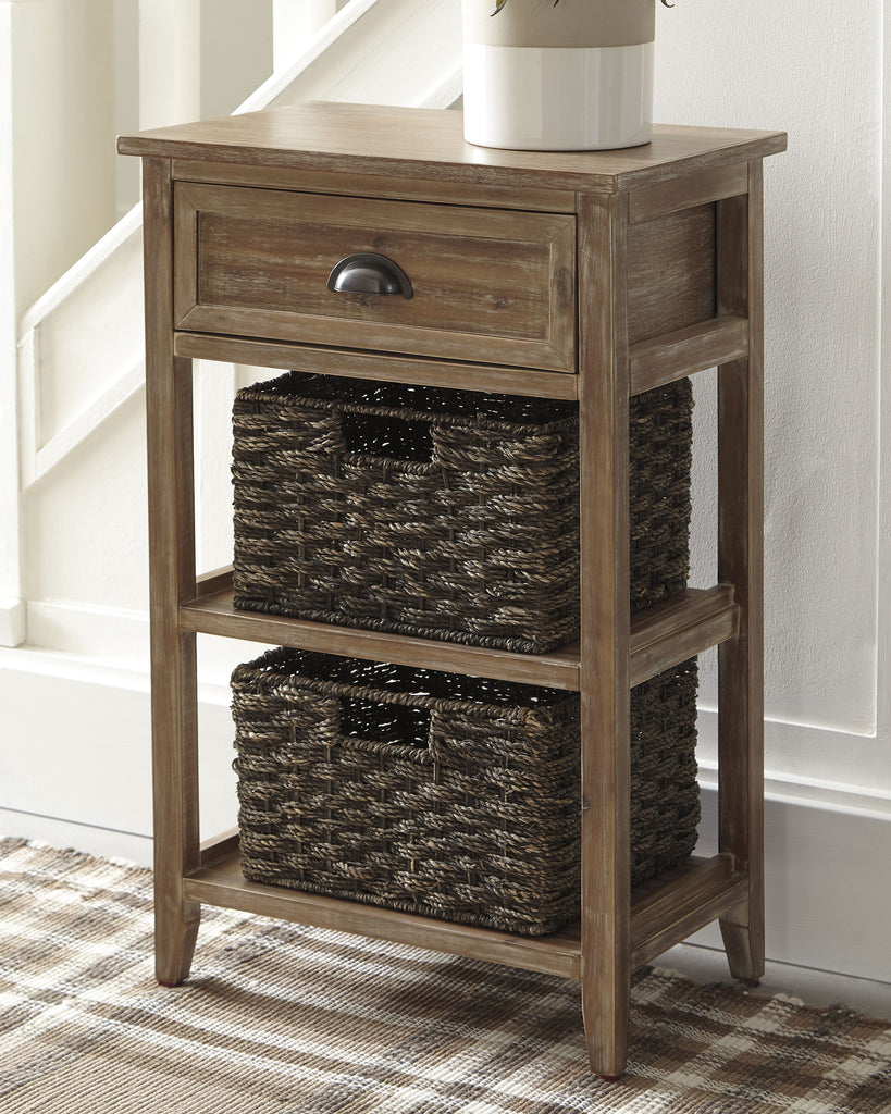 Make your modern farmhouse or cozy cottage that much quainter with this accent table in antiqued white. Pair of woven storage baskets enhance its casually cool sensibility while cup pull adds a retro-chic touch. Be it in the home office or hallway what a handy addition. Manufacturer Warranty: 0 Days