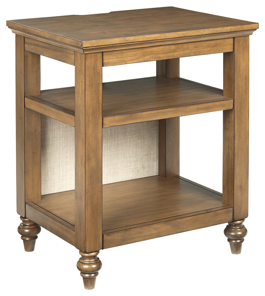 Dressed to impress with a beige fabric back panelfor something new and something youthis accent table masters the art of transitional design. The clean simply chic profile is beautified with a warm brown finish and elegantly turned feet. USB plug-ins make this accent table that much more useful. Manufacturer Warranty: 0 Days
