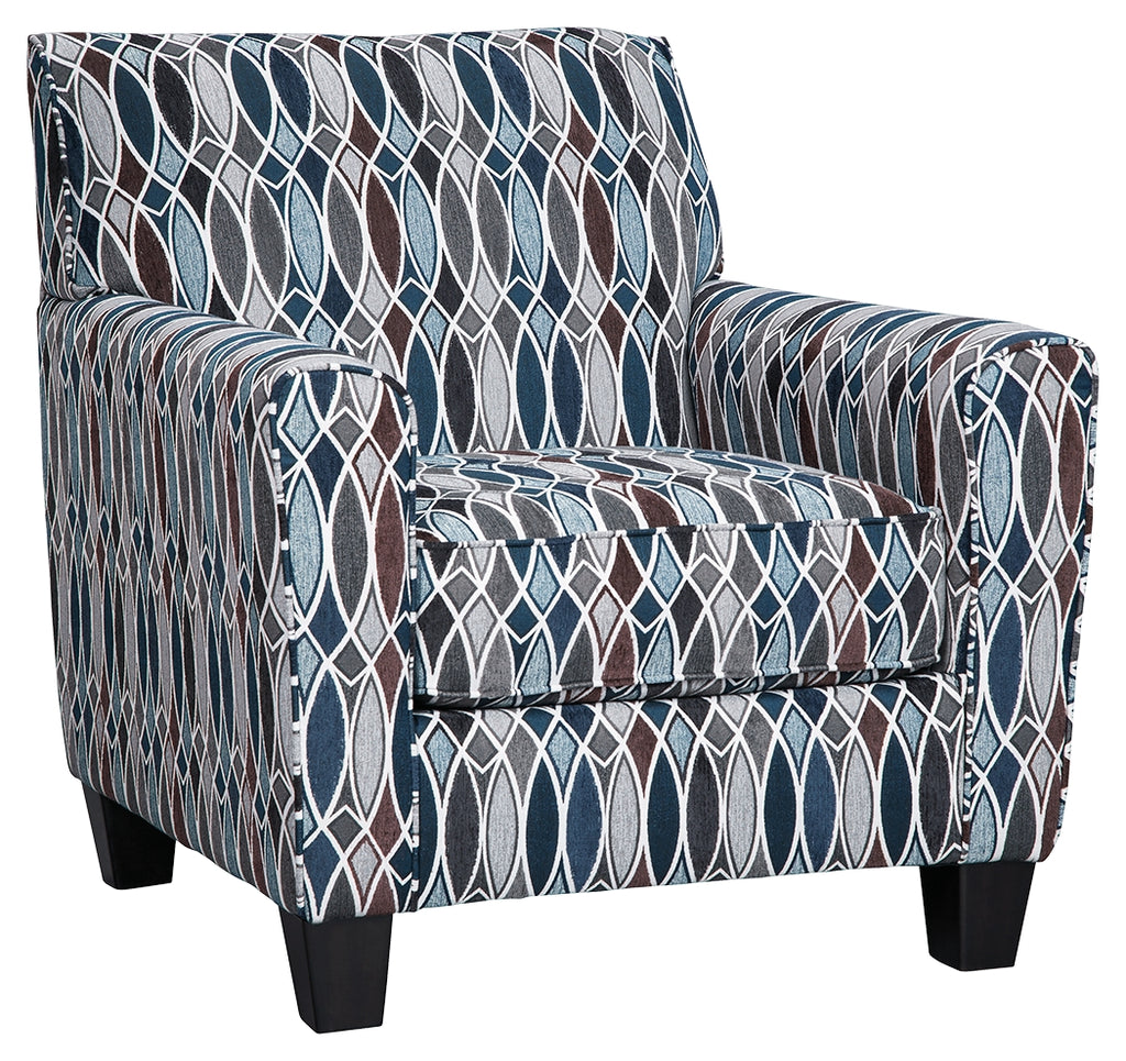 Immersed in a glasswork-inspired pattern design this accent chair makes it easy to lose yourself in its comfort. Plush cushions with fresh pops of midnight and powder blue give this chair a casually contemporary vibe. Manufacturer Warranty: 365 Days