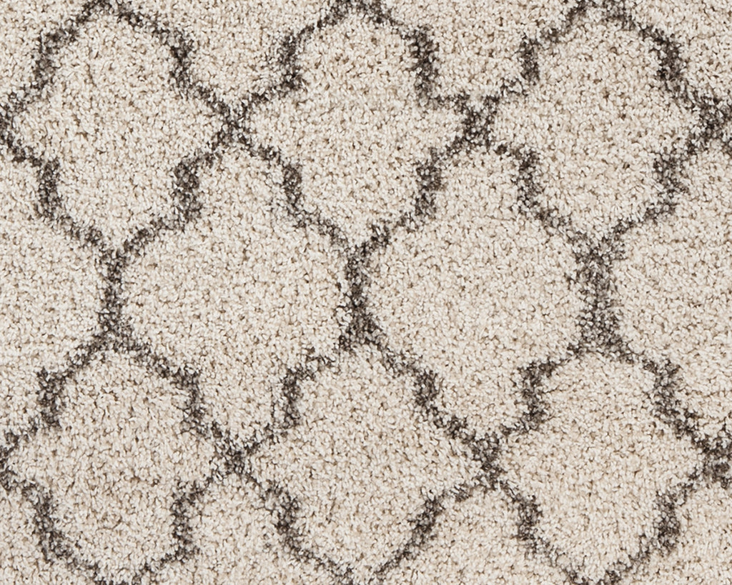 Moorish lattice pattern in cream and black weaves a touch exotic element into an everyday practical style. Subtle enough to beautifully blend. Dramatic enough to make a statement. Deep shag pile is plush beyond compare. Manufacturer Warranty: 0 Days