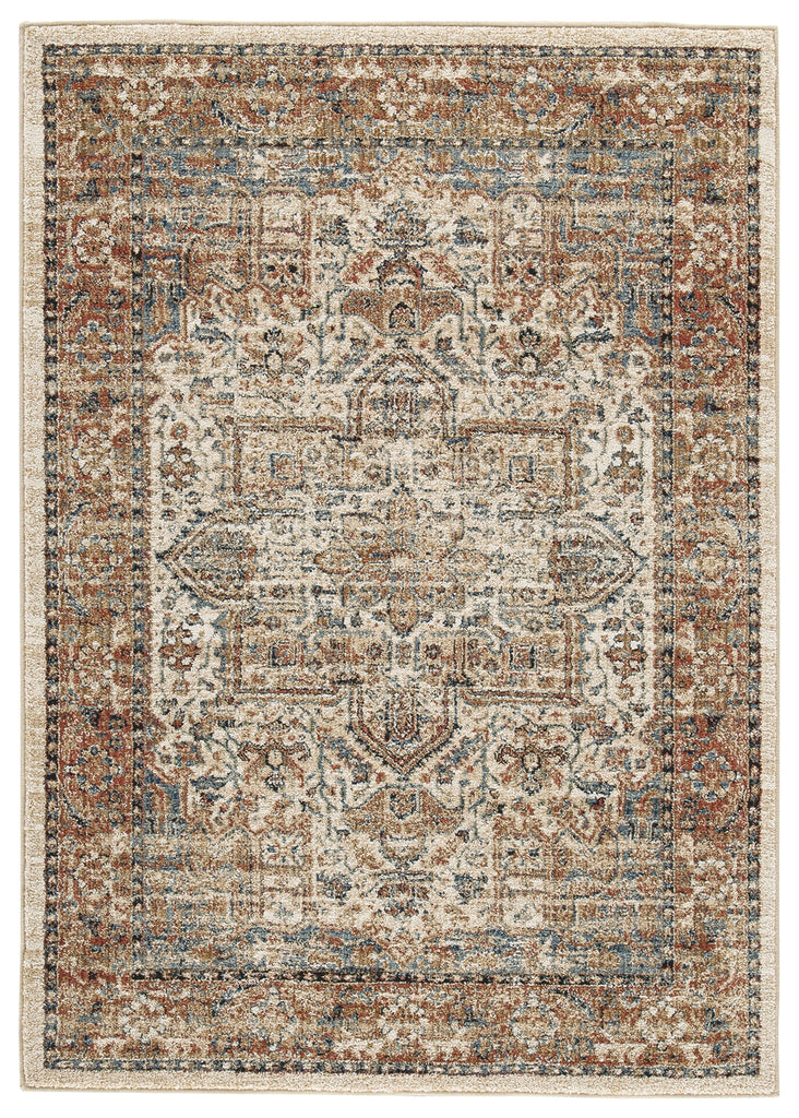 Whether your aesthetic is classic eclectic or vintage inspired this masterfully styled medallion accent rug will feel right at home. Palette of tan blue and rust is a must for lovers of earthy elegance. Manufacturer Warranty: 0 Days