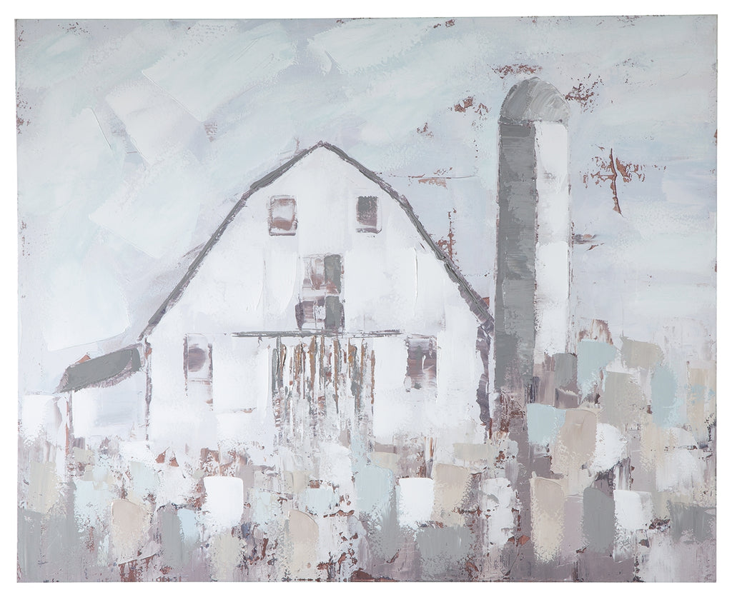 Make your modern farmhouse or cozy cottage complete with this brilliant rendition of barn wall art. Muted palette blends shades of blue gray and white for a fabulously faded aesthetic. Gallery wrapped canvas is right on trend. Manufacturer Warranty: 0 Days