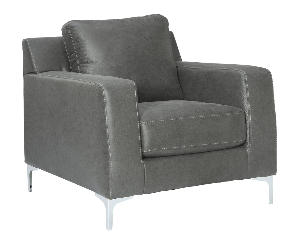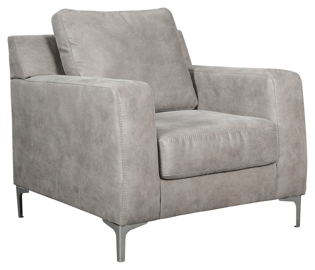 What a pleasant surprise high-end luxury made comfortably affordable. Thats what makes this faux leather chair in steel gray so alluring. Made exclusively for those wanting to make a designer statement this finely crafted chair is dressed to impress with crisp clean styling sumptuous cushioning and a fabulous fabric that looks like cool weathered leather but entices with a warm indulgent feel. Manufacturer Warranty: 365 Days