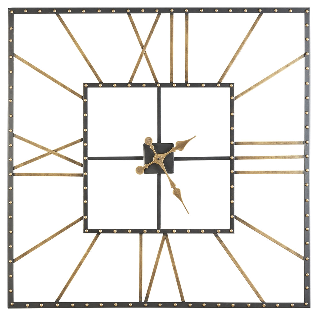 A huge clock especially one thats unique is an easy way to incorporate casual design into a rooms decor. With this large square wall clock youll always know what time it is because it cant be missed. Its openwork design cleverly incorporates a Roman numeral clock face with traditional hands in a black frame designwhat a clean look that can complement many different types of decor from modern to traditional. Manufacturer Warranty: 0 Days