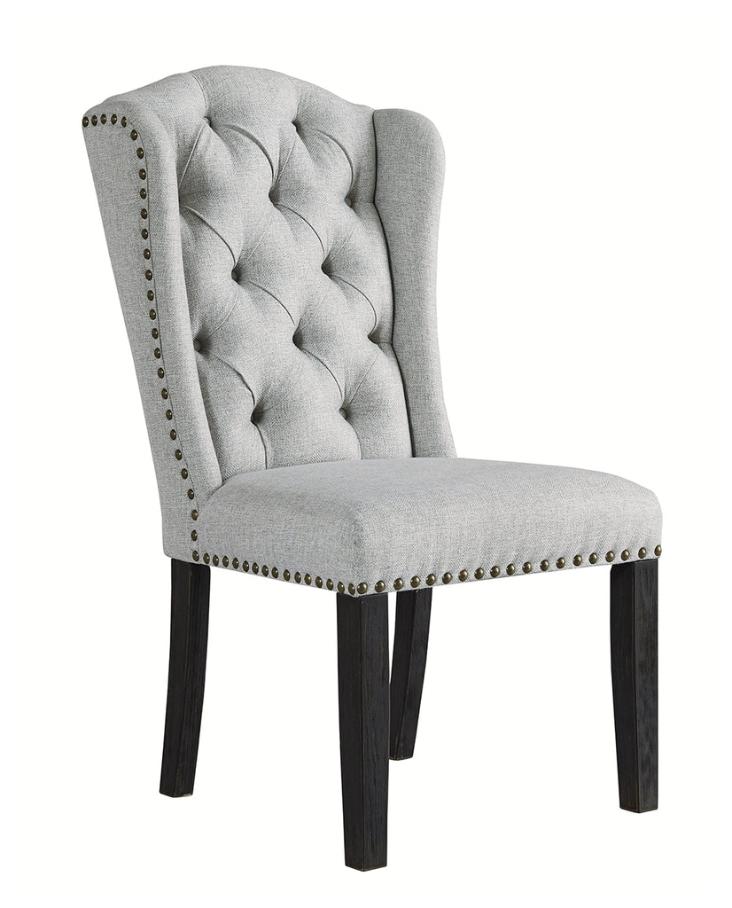 With its fashion-forward take on timeless wingback styling this upholstered dining chair is a feast for the senses. Richly neutral linen-weave upholstery is punctuated with nailhead trim for trendy flair. Deep button tufting enhances the luxurious look and feel thats designed to make gathering around the table an easy-elegant experience. Manufacturer Warranty: 365 Days