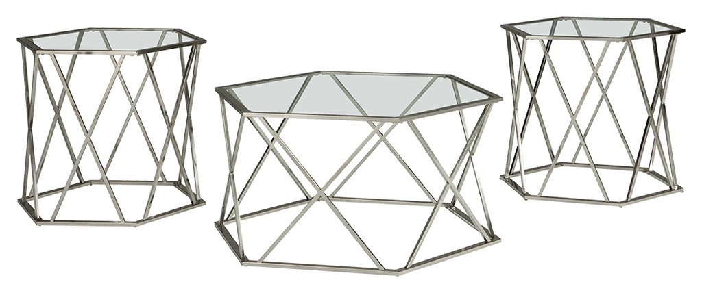 Madanere Signature Design by Ashley Chrome Finish Table Set of 3, 34W x 37D x 20H, 65lbs.