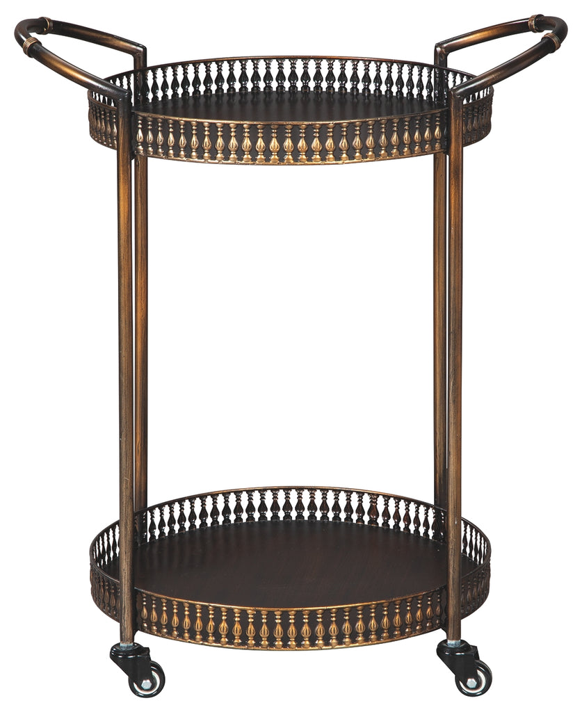 Clarkburn Signature Design by Ashley Bronze Finish Bar Cart, 25W x 18D x 29H, 10lbs.