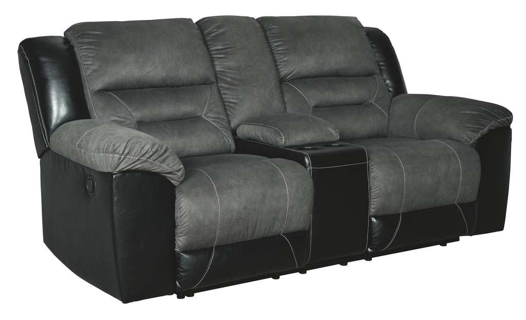 Earhart Signature Design by Ashley Slate Reclining Loveseat with Console, 81W x 39D x 43H, 208lbs.