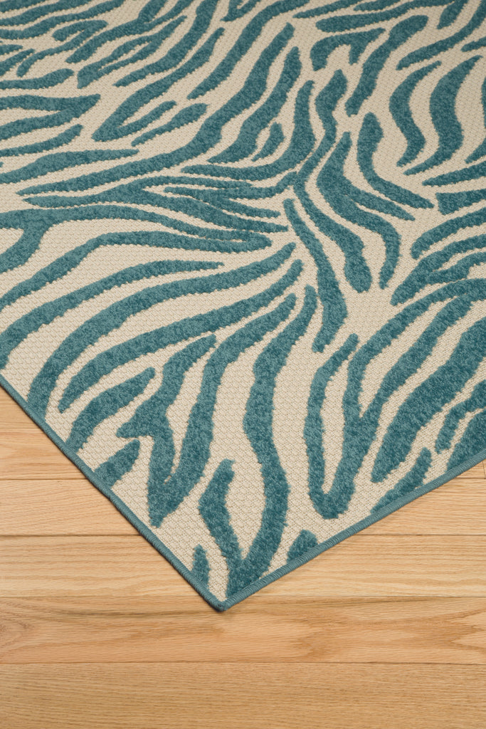 If youve got a penchant for exotic patterns this accent rug is your call to the wild. Abstract zebra stripes swim in a turquoise and tan array for an impressive casual-cool finish. With this rugs durable polypropylene youve got the freedom for indoor-outdoor play and design. Manufacturer Warranty: 0 Days