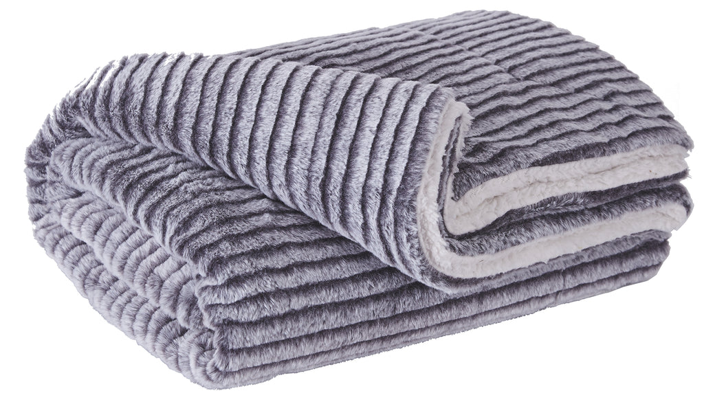 Making its mark with carved faux fur on the front and sherpa on the back this designer throw puts the accent on texture. Black undertones give the gray fabric added depth and interest. Manufacturer Warranty: 0 Days