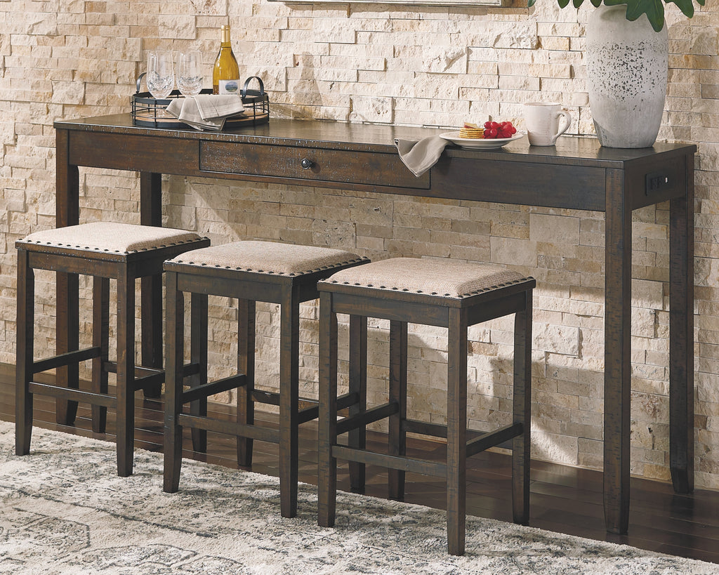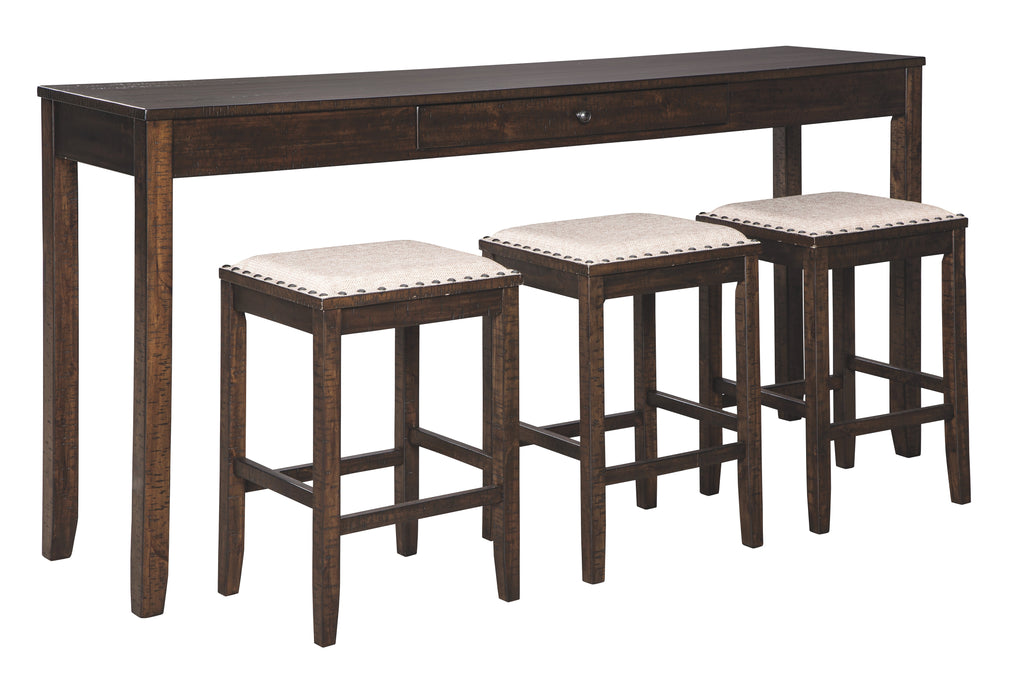 Rokane Signature Design by Ashley Brown Counter Height Dining Room Table and Bar Stools Set of 4, 74W x 17D x 36H, 100lbs.