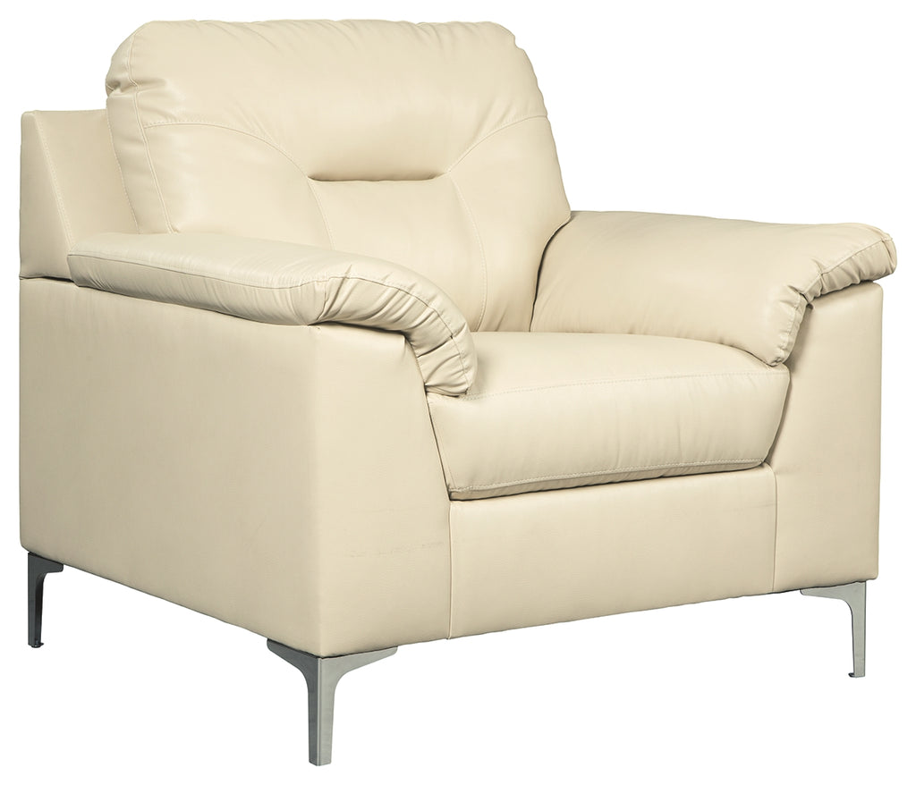 Inspired by penthouse suite living this designer chair in ice cream faux leather is high-end style made comfortably affordable. Striking a pose with a clean boxy profile punctuated with channel tufting this sumptuously upholstered chair sports minimalist-chic metal feet for an ultra-modern twist. Manufacturer Warranty: 365 Days