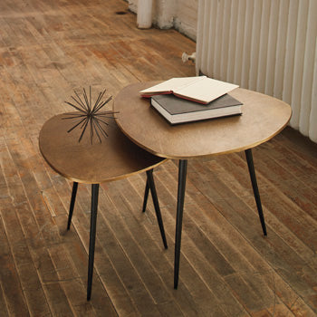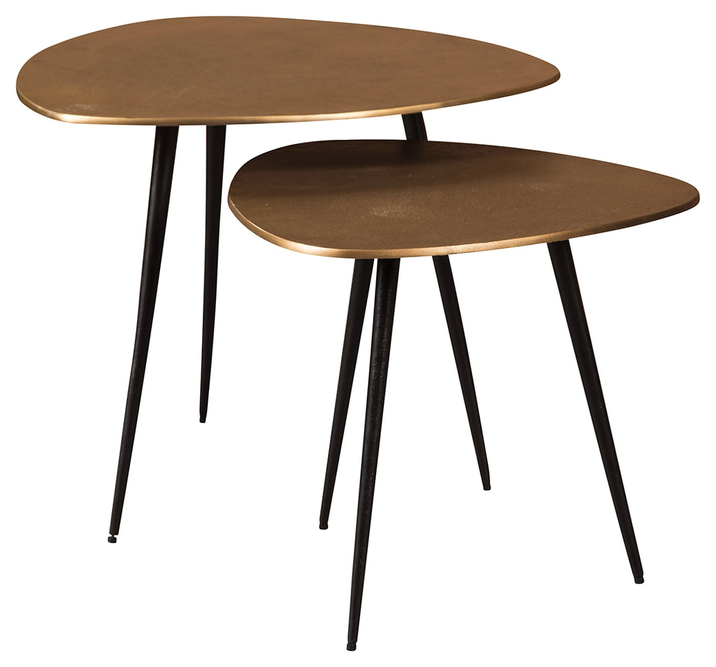 Beautifully in tune in contemporary places and mid-century inspired spaces the Shemleigh 2-piece accent table set is music to your eyes. Rocking a two-tone brass-toneblack finish these guitar pick tables crafted of cast aluminum make such a striking duo. Manufacturer Warranty: 0 Days