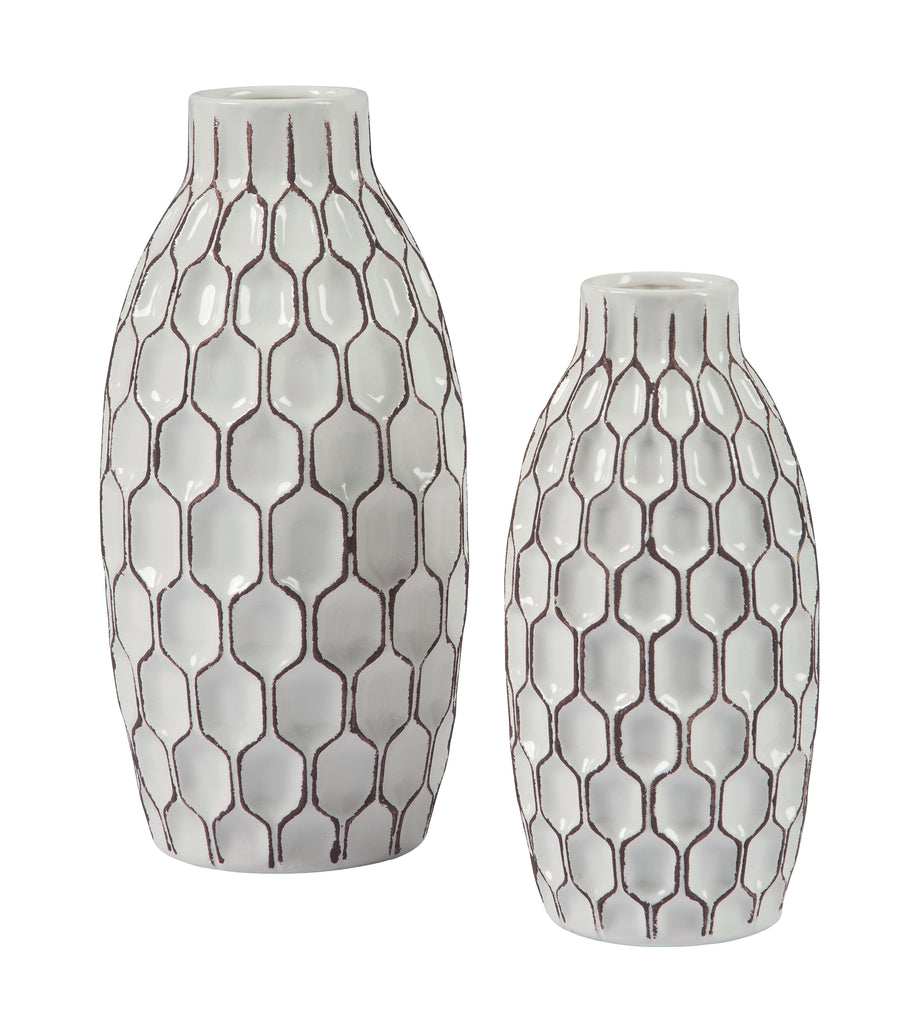 Put geometric pattern on repeat with this 2-piece vase set. Brown punctuates with indented hexagons for a multi-dimensional look. Manufacturer Warranty: 0 Days