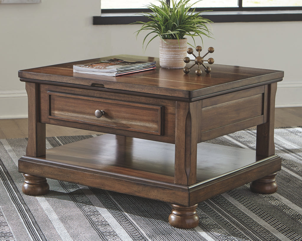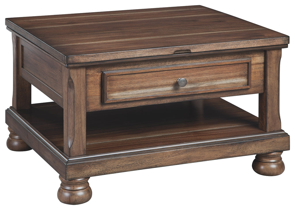 Flynnter Signature Design by Ashley Medium Brown Coffee Table with Lift Top, 33W x 28D x 20H, 75lbs.
