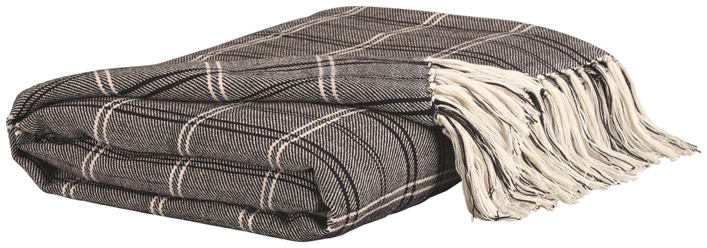 This throw blanket is as quintessential as your favorite flannel top. Woven in soft acrylic fabric the plaid pattern offers a subtle sophisticated touch in black gray and ivory neutrals. Fringed ends add extra flair and look beautiful draped over an accent chair or your shoulders. Manufacturer Warranty: 0 Days