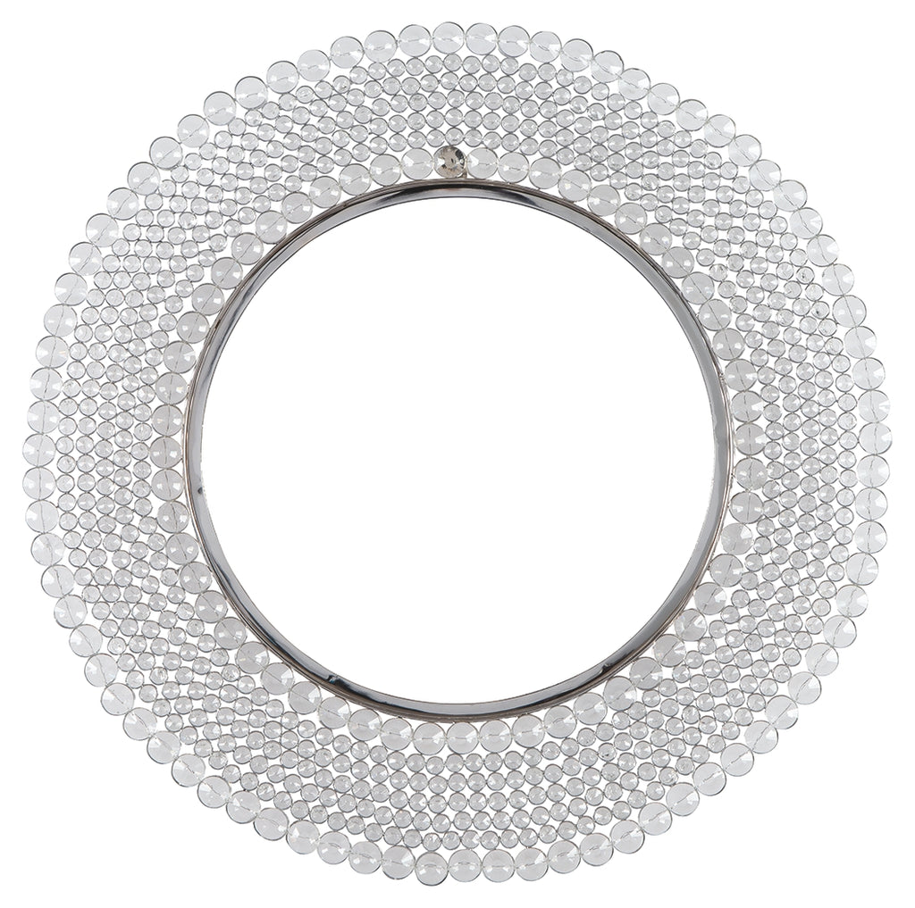 Reflect your love of glam with this magnificent accent wall mirror. Wowing with a bevy of crystal beads and silvertone finish this round accent mirror is a mastery in modern style. Manufacturer Warranty: 0 Days