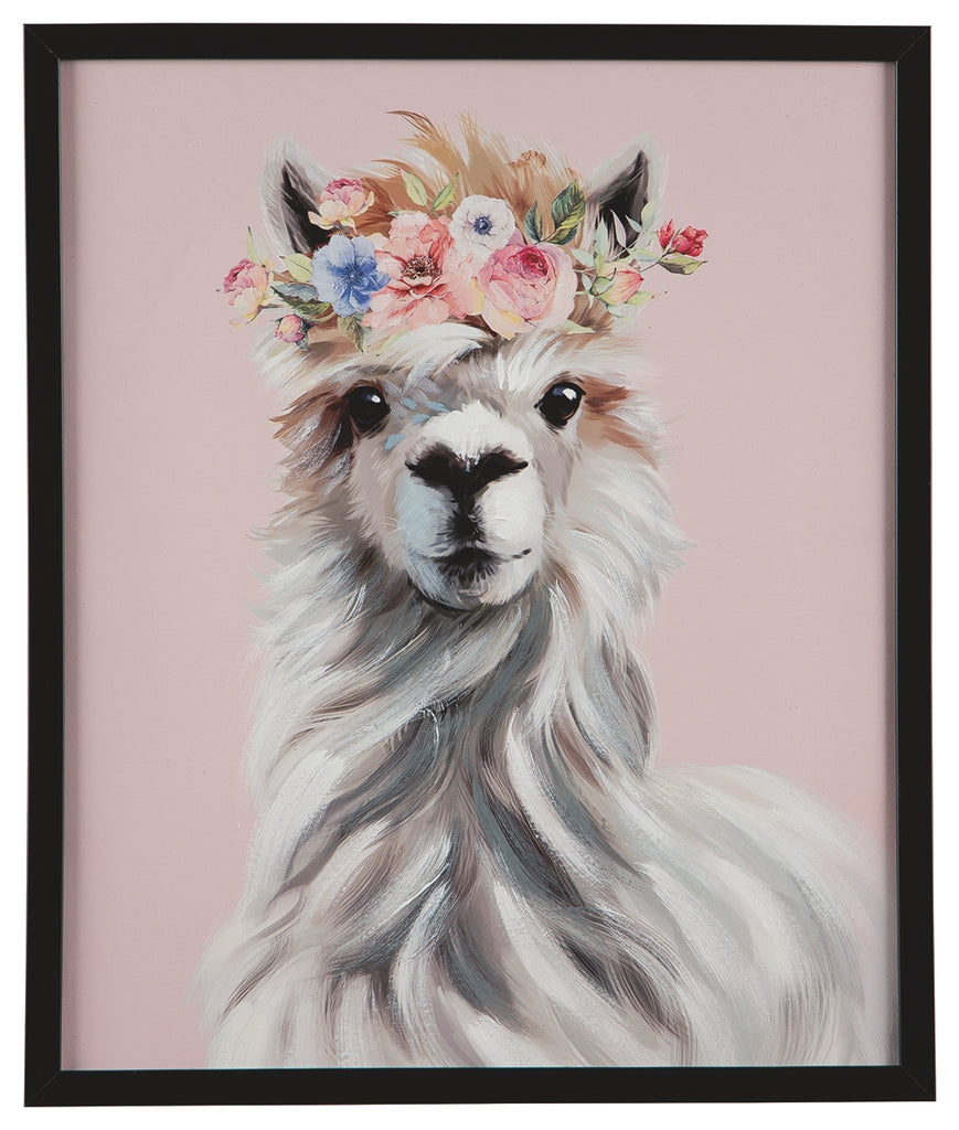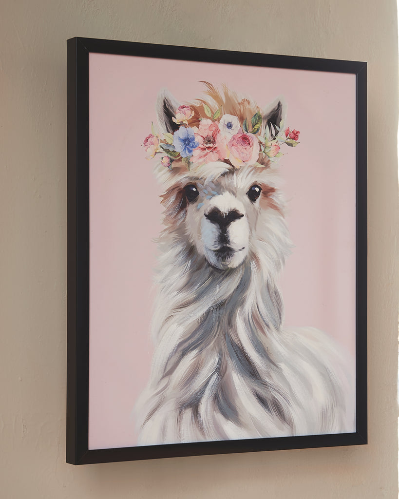 Tap into your animal instincts with this alpaca wall art. Quirky and colorful this framed gallery wrapped canvas with hand-painted embellishments makes a delightfully different addition to your space. Manufacturer Warranty: 0 Days